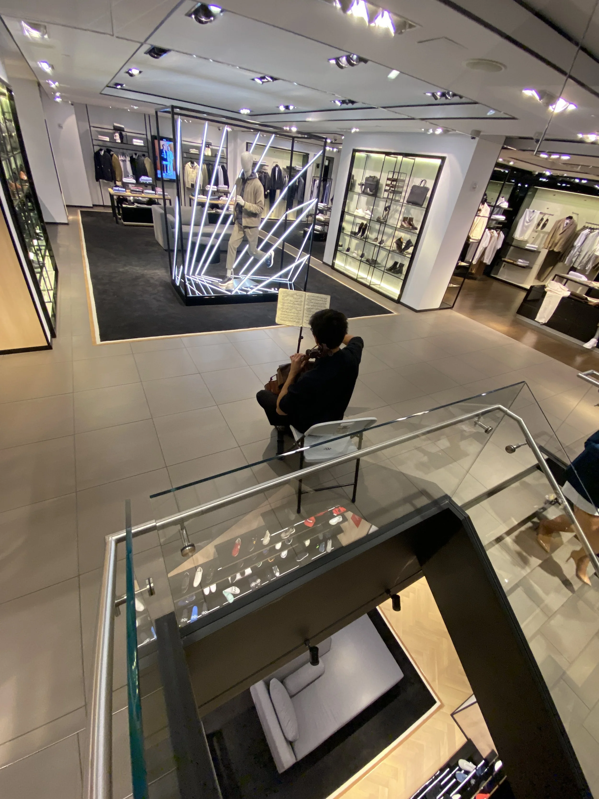 Attendees were welcomed to the three-floor BOSS Hugo Boss flagship with Julliard musicians, passed hors d’oeuvres and champagne. Women and men alike shopped the new season’s collection with an exclusive in-store discount, and were able to customize their newest leather good purchases with gold or silver embossed initials courtesy of OnsiteEvents.ME.